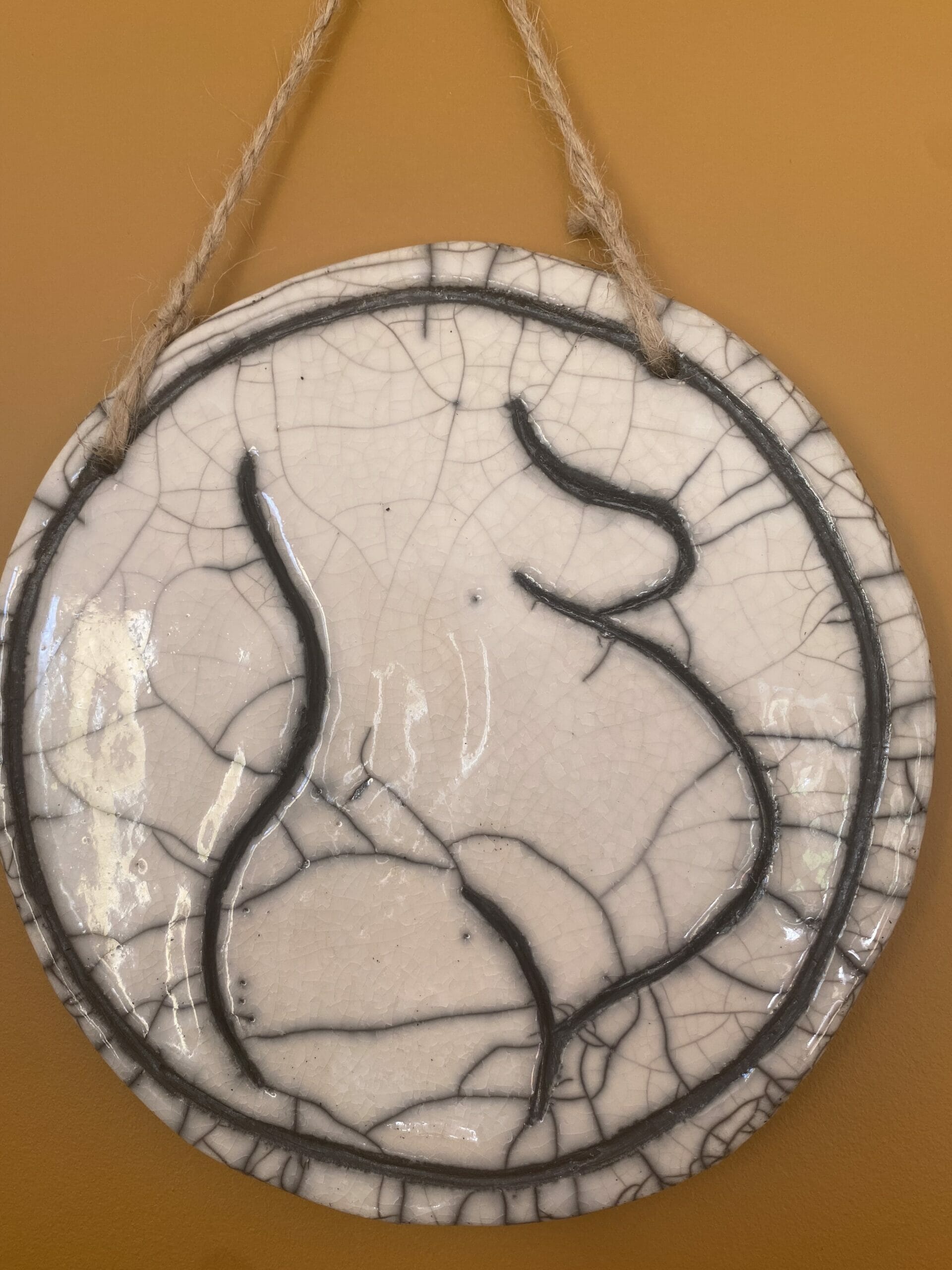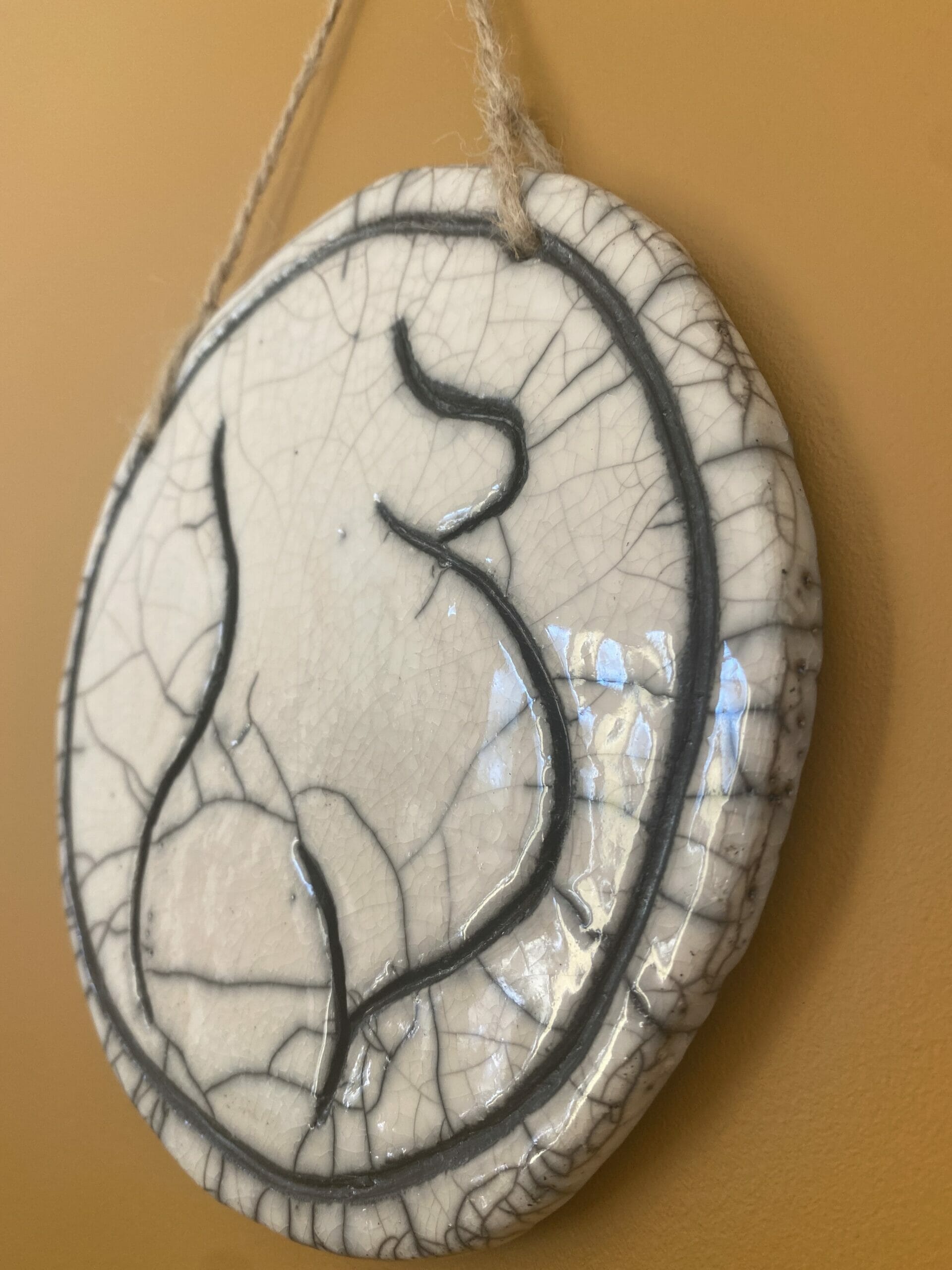 Ce beau talisman Femme Enceinte est en céramique Raku. Un beau cadeau à offrir pour un blessingway. Très original et unique. Les craquelures sont obtenues grâce à une cuisson raku, ancienne technique japonaise qui date du 15e siècle que les japonais pratiquaient pour le cérémonial du thé. Il viendra s’accrocher au mur de votre espace de ressourcement, là ou vous aimez être vous simplement. Tous les talismans sont de fabrication artisanale française, faite par mes soins dans l’atelier de céramique, Le raku de Sylvie (@lerakydesylvie) qui est situé dans les Pyrénées Atlantiques proche de Pau.